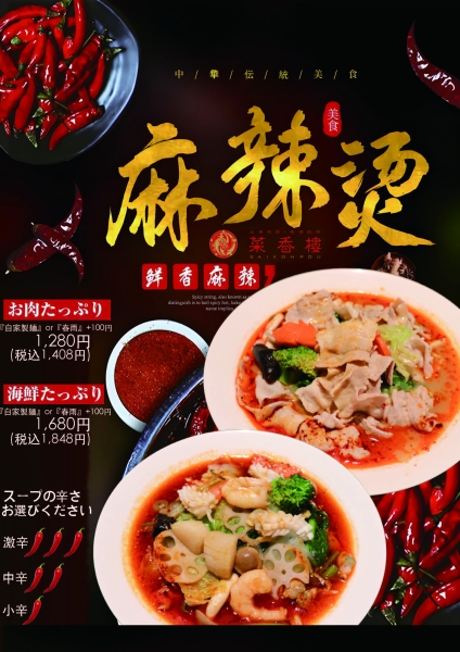 菜香楼麻辣湯を販売始めました。鶏や豚を丹念に煮込んだスープに、20種類以上の薬膳スパイスを組み合わせています。薬膳のほとんどは中国では漢方薬として使われているもので、痩身や健胃など様々なデトックス効果が期待できます。唐辛子のカプサイシンは脂肪を燃焼させる効果があります。トッピングには食物繊維豊富な野菜を取り揃えており、ダイエットに最適なヘルシーフードです。